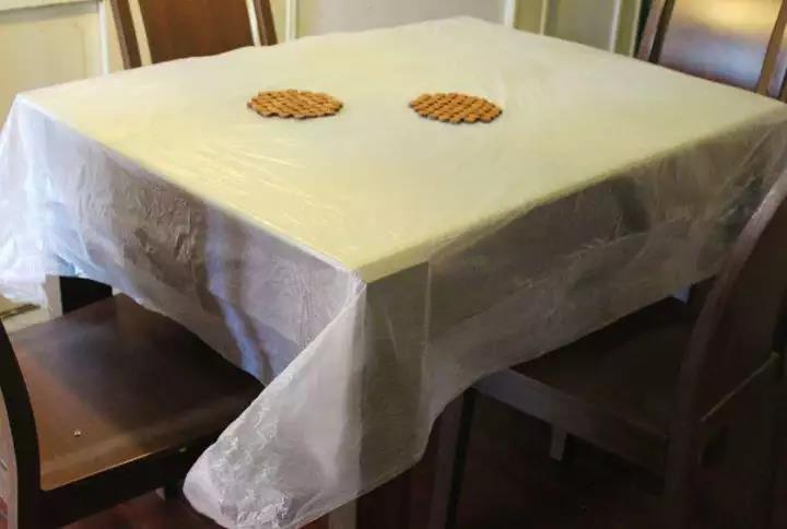 先在廚房窗戶上噴上清潔劑,再蓋上一層保鮮膜。