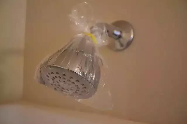 要清潔淋浴噴頭其實(shí)很簡(jiǎn)單,拿一個(gè)塑料袋,倒入蒸餾水白醋,用橡皮筋固定在淋浴頭上,浸泡一小時(shí)后用干凈濕布擦干即可。