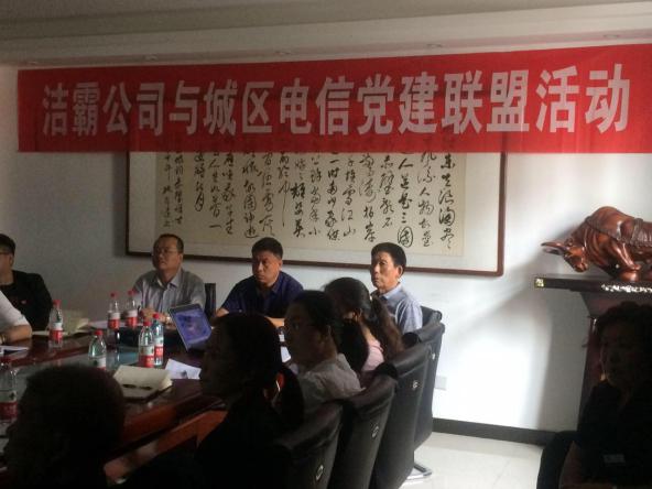 5月27日下午,潔霸公司黨支部與城區(qū)電信東城西城聯(lián)合黨支部開展了黨建聯(lián)盟活動。首先雙方對公司的概況以及黨支部成員的構(gòu)成做了詳細的介紹?偨(jīng)理程晉軍及支部書記李山虎對城區(qū)電信公司黨支部成員的到來表示了熱烈的歡迎。