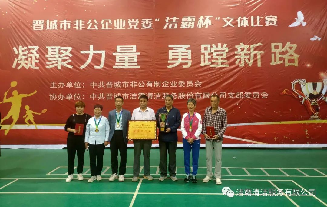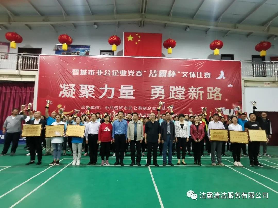 9月25日下午,晉城市非公企業(yè)黨委“潔霸杯”文體比賽落下帷幕。此次比賽由中共晉城市非公有制企業(yè)委員會(huì)主辦,中共晉城市潔霸清潔服務(wù)股份有限公司支部委員會(huì)冠名協(xié)辦。此次活動(dòng)的主題是“凝聚力量 勇蹚新路”,旨在新中國(guó)成立71周年之際,全面展示非公企業(yè)黨組織開(kāi)展群眾性體育活動(dòng)的豐碩成果,以及廣大黨員干部創(chuàng)先爭(zhēng)優(yōu),奮發(fā)進(jìn)取,勇蹚新路,爭(zhēng)做時(shí)代先鋒的精神風(fēng)貌。