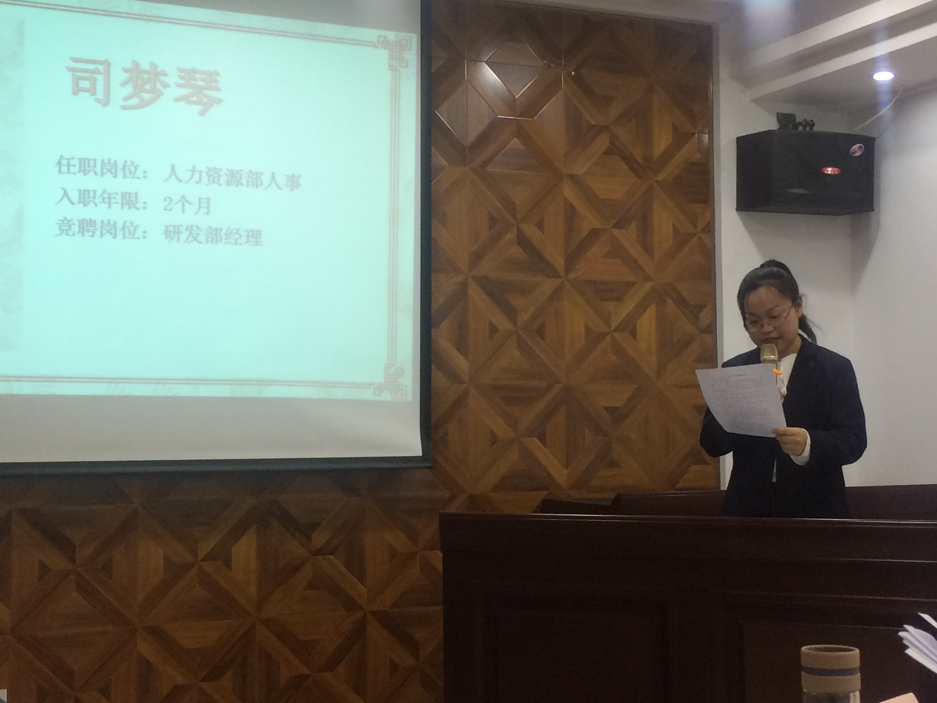 通過層層篩選,參加本次競聘者共有14人,分別競聘綜合辦公室主任、太原分公司經(jīng)理、人力資源部經(jīng)理等五個(gè)崗位,競聘者既有摸爬滾打20多年的老員工,又有入職不到半年的大學(xué)生;既有中層崗位上的管理者,又有從太原、晉中等地趕來的競聘者。競聘演講、預(yù)設(shè)提問、評委點(diǎn)評、計(jì)算機(jī)實(shí)操等環(huán)節(jié)環(huán)環(huán)緊扣,競聘者演講的精彩,評委點(diǎn)評的到位,個(gè)個(gè)精彩,人人優(yōu)秀。公司經(jīng)理程晉軍說:“本次競聘工作結(jié)束后,將有一批德才兼?zhèn)涞膯T工走上管理崗位,今后也將會(huì)有多場的競聘活動(dòng),進(jìn)一步優(yōu)化用人機(jī)制,激發(fā)員工的工作積極性。”