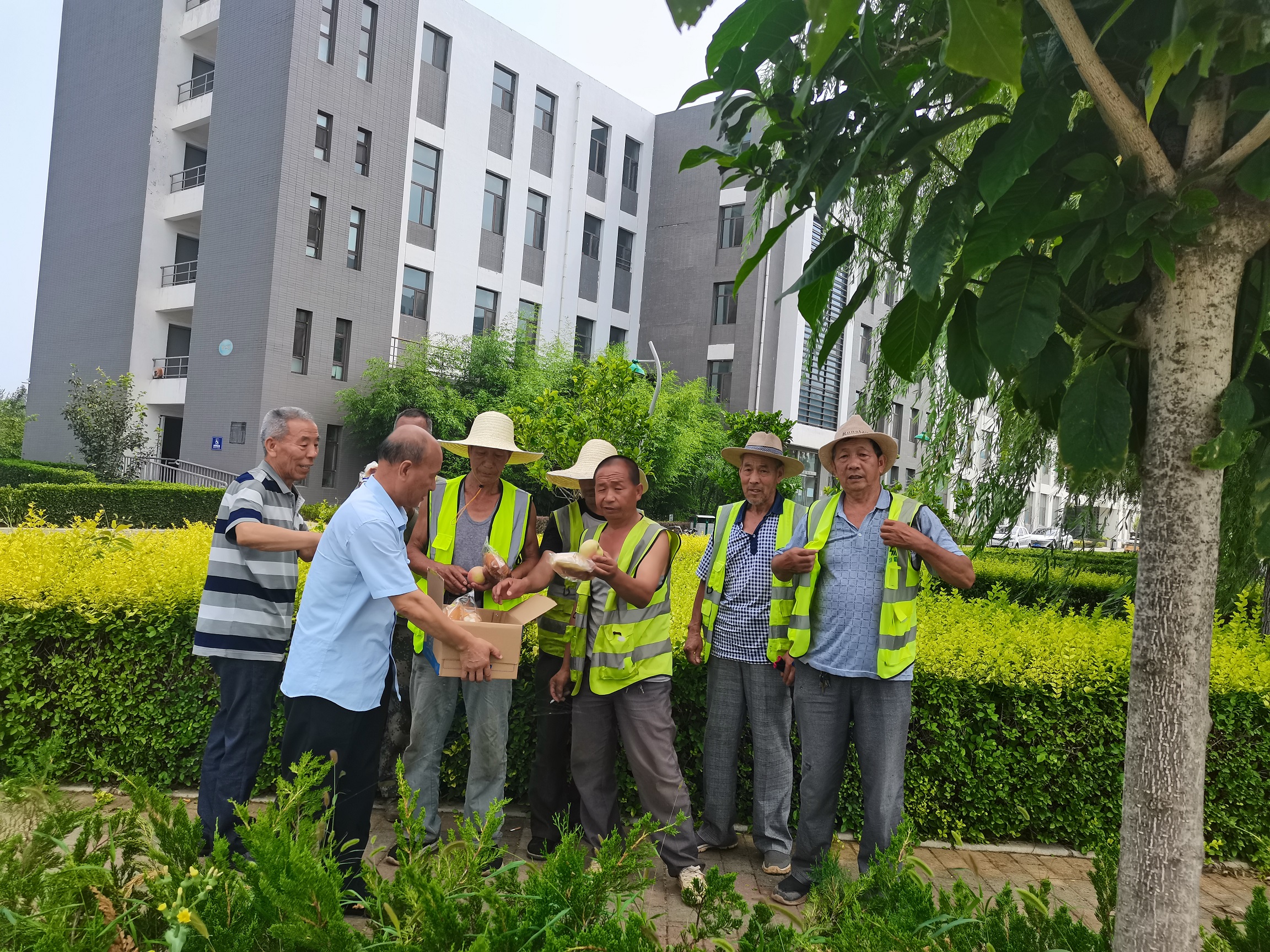 崔偉一行先后到山西科技學(xué)院、晉城市金鳳凰廣場、人民廣場、物貿(mào)廣場、鳳西廣場、沁水端氏小學(xué),對堅守崗位、堅持服務(wù)的潔霸員工進行慰問,為他們送上白糖、面包、桃子、藿香正氣水等慰問品,向他們戰(zhàn)高溫,斗酷暑,辛勤付出表示肯定和感謝,并叮囑大家注意防暑降溫,合理安排工作,保障自身安全健康,在疫情防控的關(guān)鍵時期要做好個人防護,筑牢防疫屏障。一線員工表示:感謝公司的關(guān)愛,一定會做好本職工作,為建設(shè)活力、美麗、幸福新潔霸做出更大的貢獻。