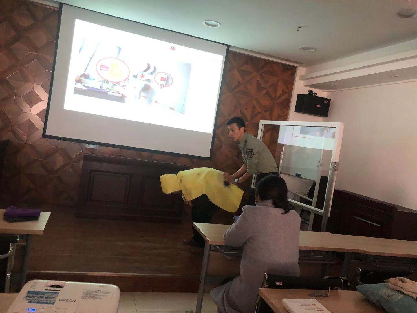 培訓中,李偉教官還向大家介紹了一些生活中的防火小技巧,如:燃氣著火要及時關;油鍋著火時最好使用滅火器、滅火毯等,或使用冷油降溫、切碎蔬菜等澆滅;提倡大家要養(yǎng)成“人走電斷”的好習慣等。隨后,又向大家講解了各類火災的自救方式,特別是讓每個員工重新認識了一些預防火災的新知識,尤其是家庭預防火災4件寶(小型滅火器、逃生的繩索、手電筒、防煙面罩),讓大家對這些消防器材有了更深一步的了解。最后,消防宣傳員演示了如何正確使用滅火器。