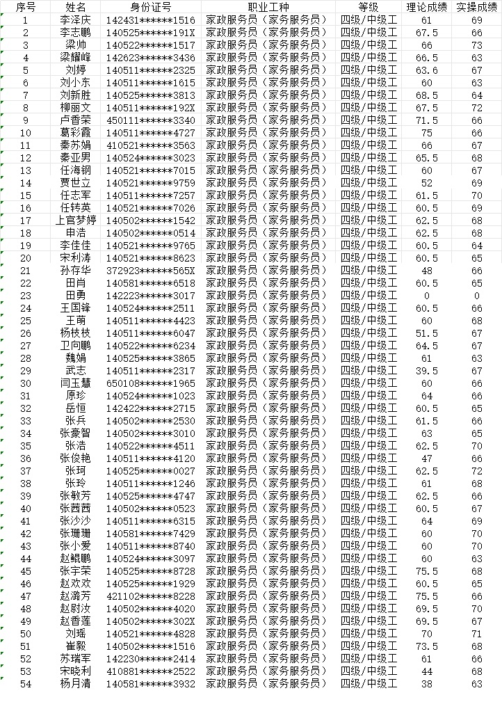 2024年1月21日上午第3批家政服務(wù)員中級認定人員成績公示
