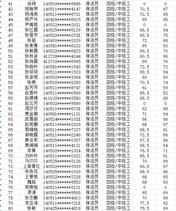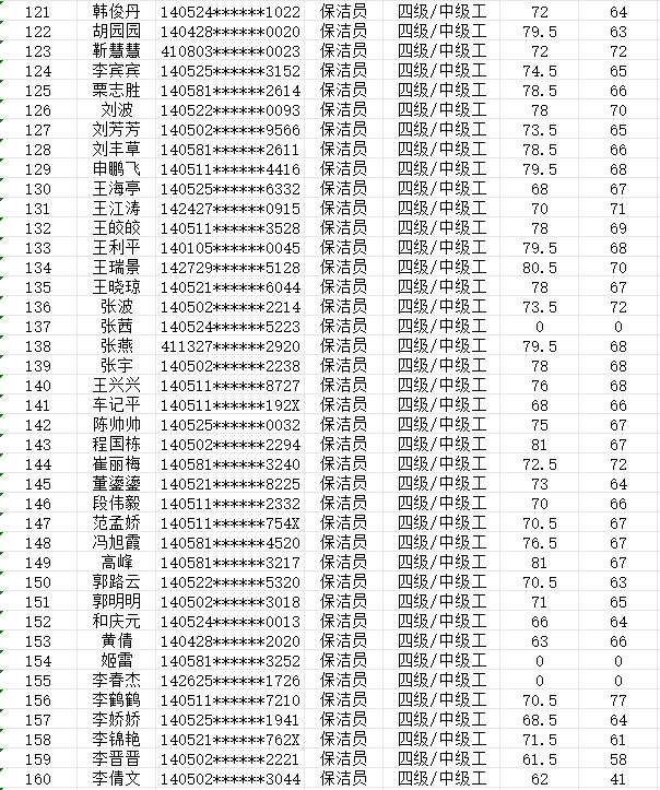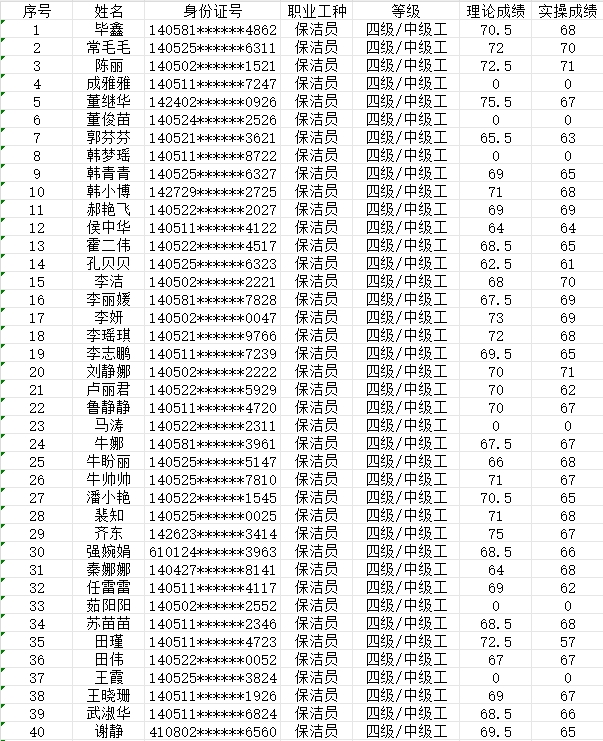 晉城市潔霸清潔服務(wù)股份有限公司職業(yè)技能等級認定中心現(xiàn)將2024年2月4日認定人員成績公示如下: