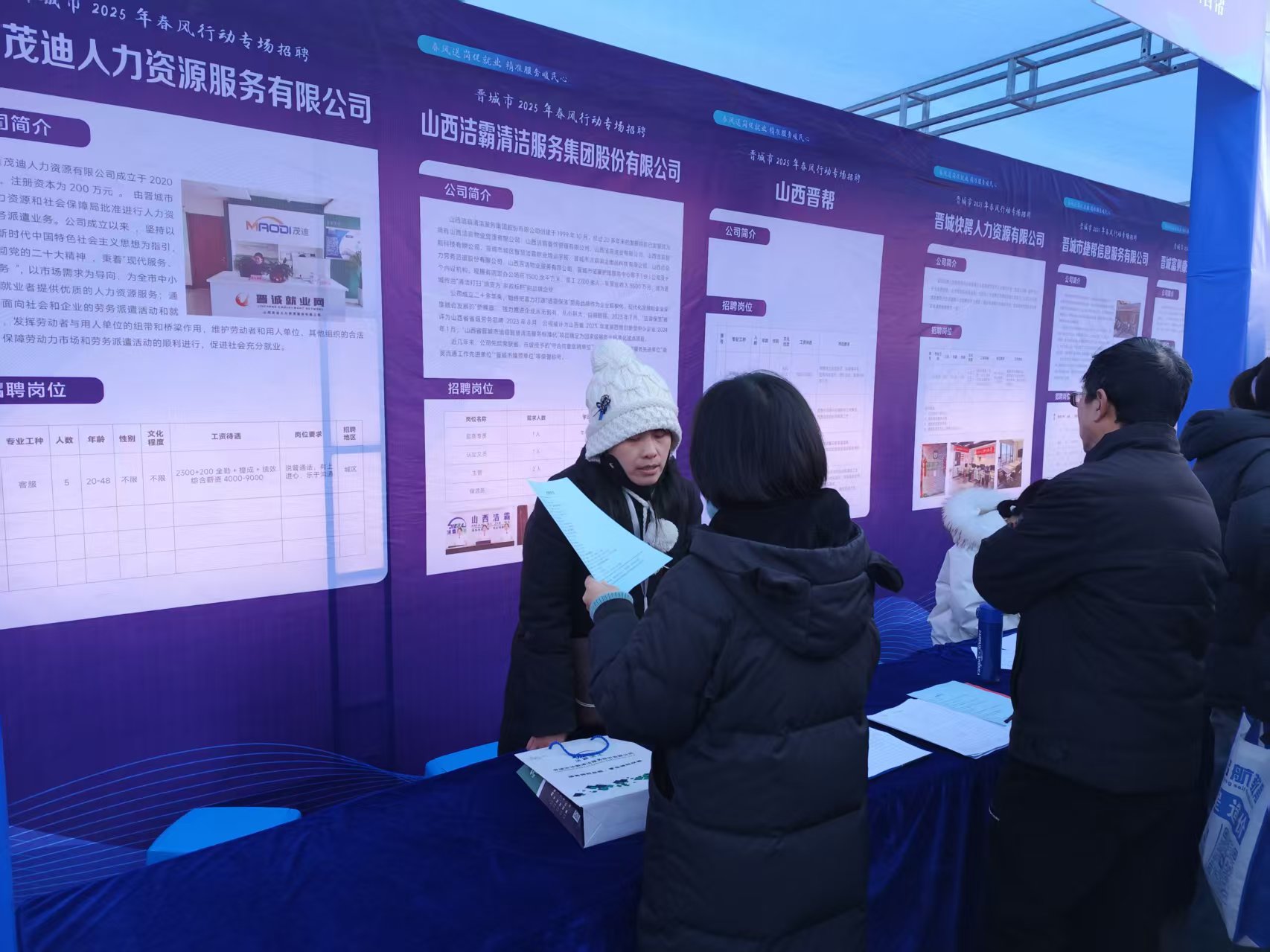 2月9日,“春風(fēng)送崗促就業(yè) 精準(zhǔn)服務(wù)暖民心”晉城市2025年春風(fēng)行動(dòng)專場(chǎng)招聘活動(dòng)在陽電體育場(chǎng)舉行。我公司人力資源部參加活動(dòng)。