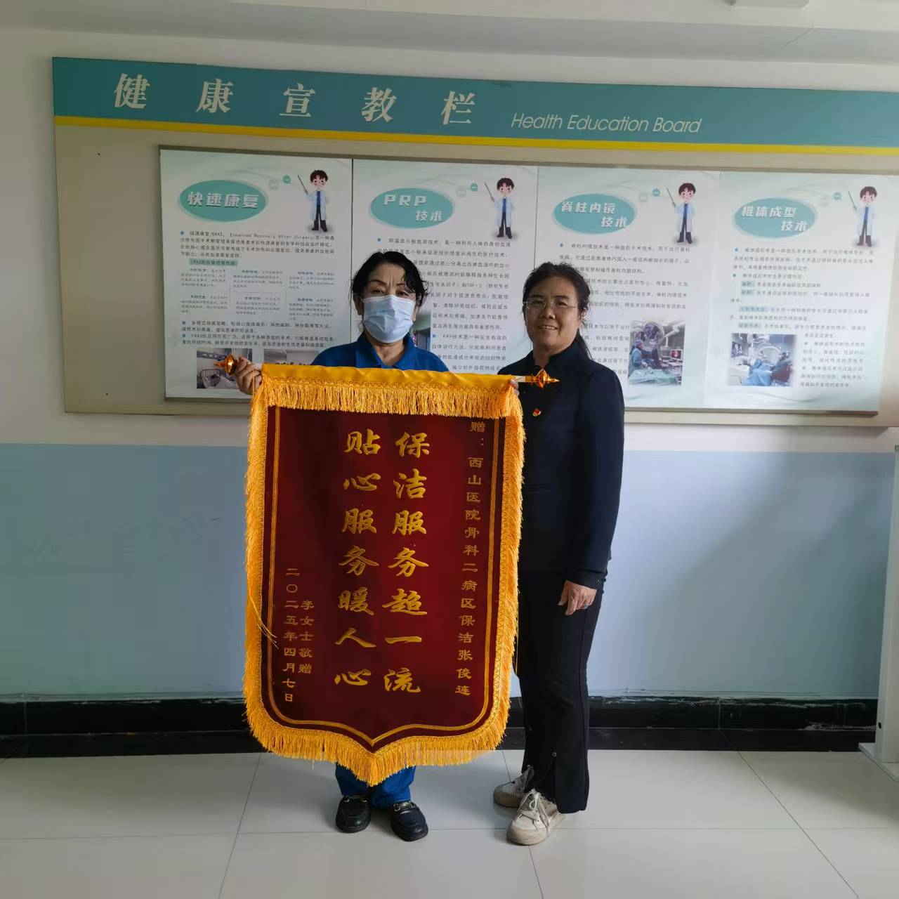 4月7日上午,一面印有“保潔服務超一流,貼心服務暖人心”的紅色錦旗被送到山西潔霸太原西山醫(yī)院項目服務部。一面錦旗,述說著一起平凡而又暖心的故事……